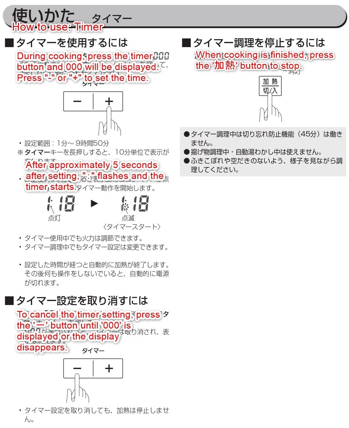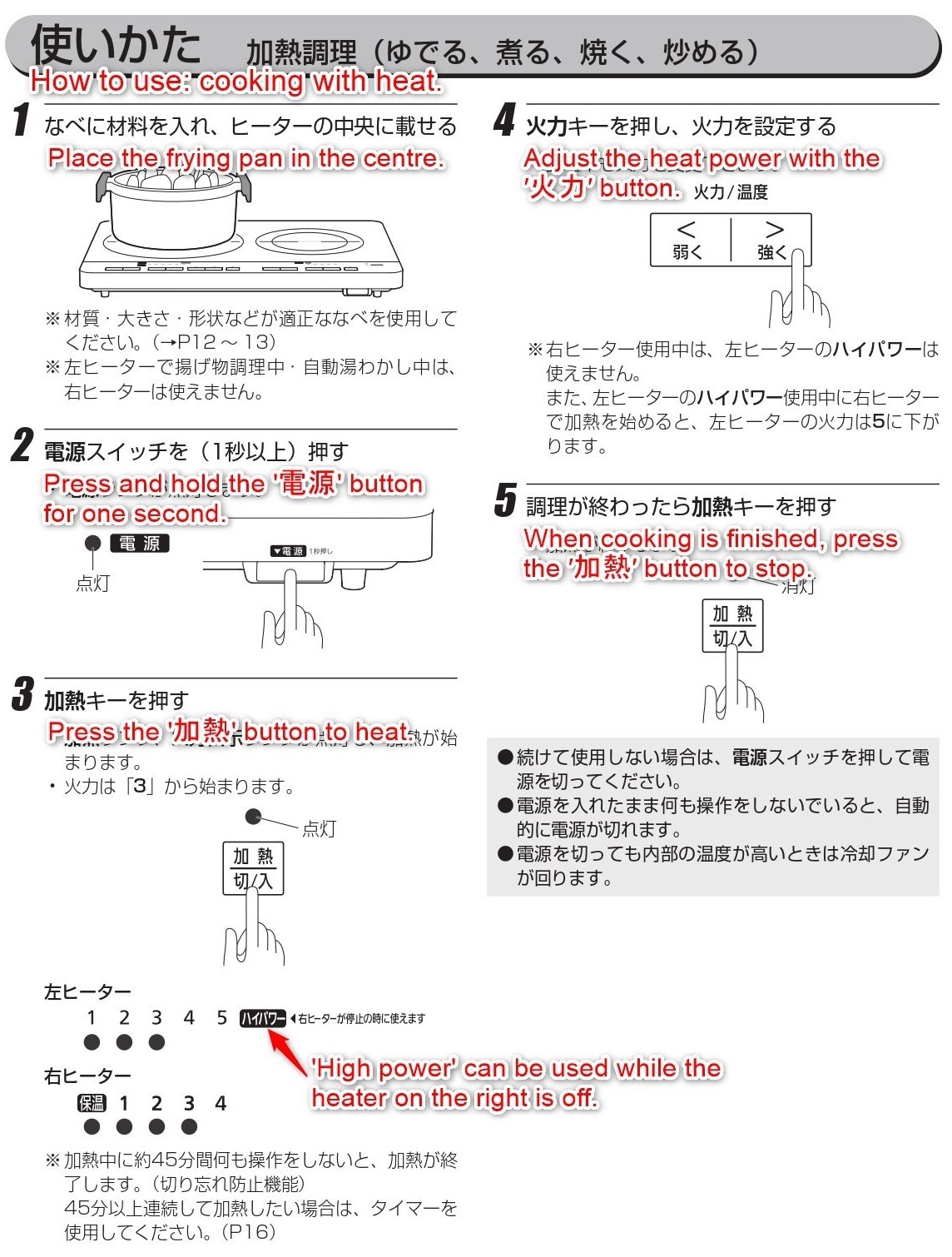 ・ IHクッキングヒーター説明書